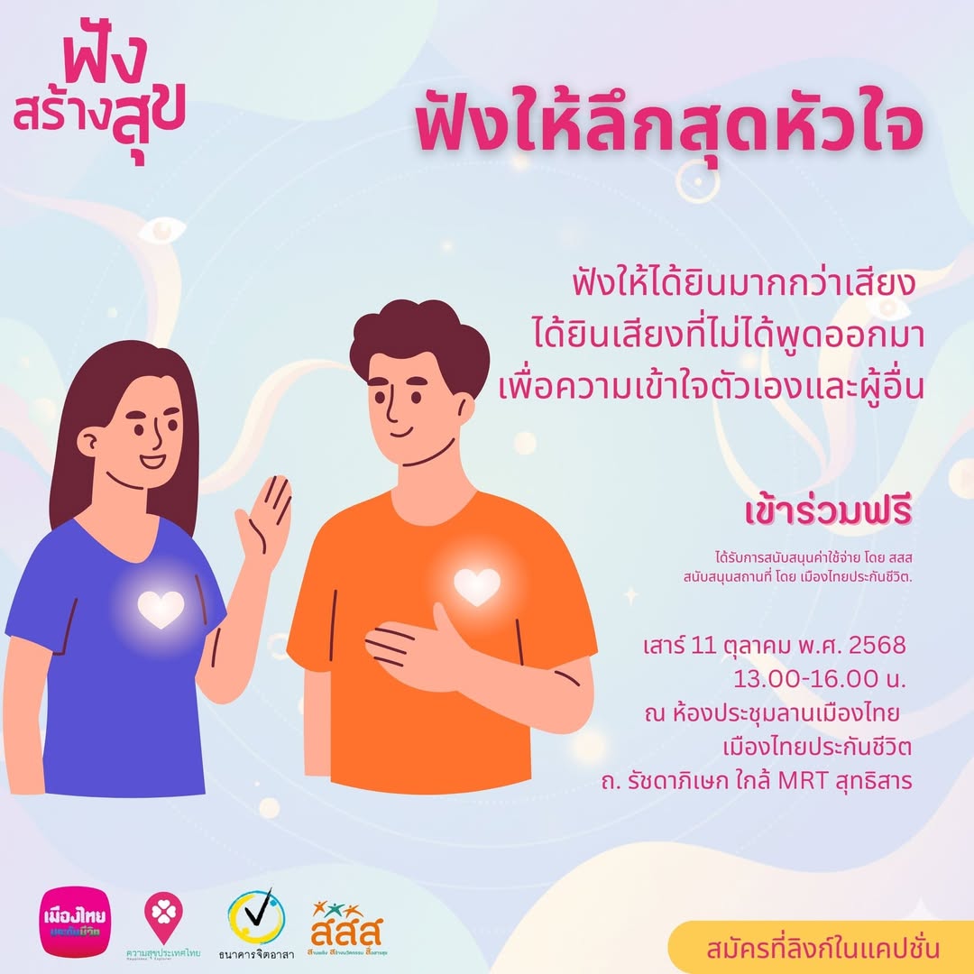 ออกไปมีประสบการณ์ #ฟังสร้างสุข เดือนตุลาคม ชวน “ฟังให้ลึกสุดหัวใจ” เรื่องโดย ทีมงานความสุขประเทศไทย 29 Sep 2025