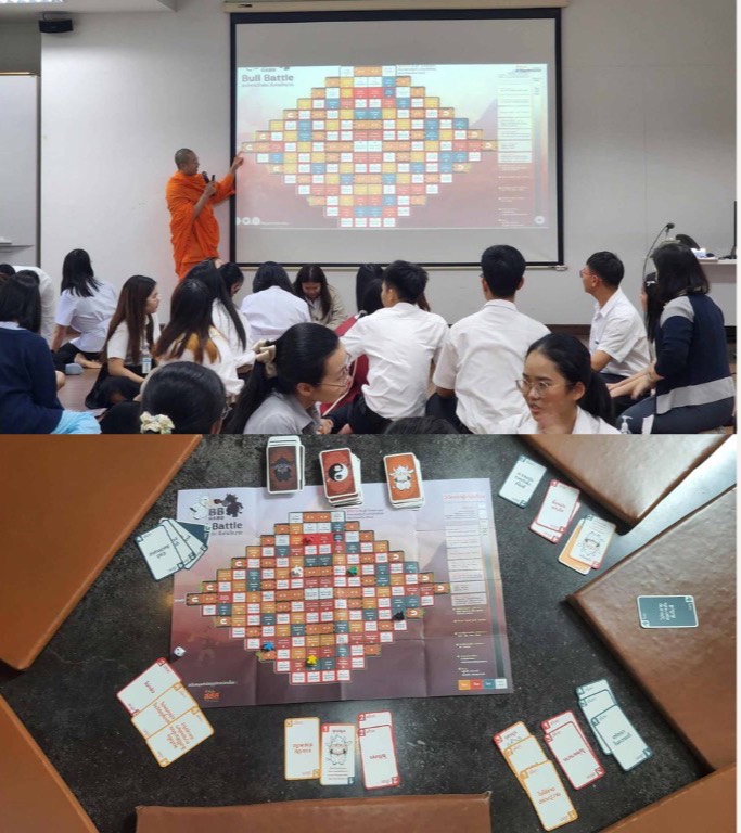 พวกเราเคยไปสอนนักศึกษารายวิชา “ความสุขในชีวิตและการทำงาน” เตรียมเนื้อหาอย่างดีแต่นักศึกษาไม่สนใจ ส่วนหนึ่งเป็นเพราะภาพจำว่าพระน่าเบื่อ ธรรมะน่าเบื่อ พระจึงต้องพยายามหาแนวทางใหม่ๆ เช่น สอนเชิงจัดกิจกรรมและเริ่มคิดบอร์ดเกมเพื่อใช้ในการสอน