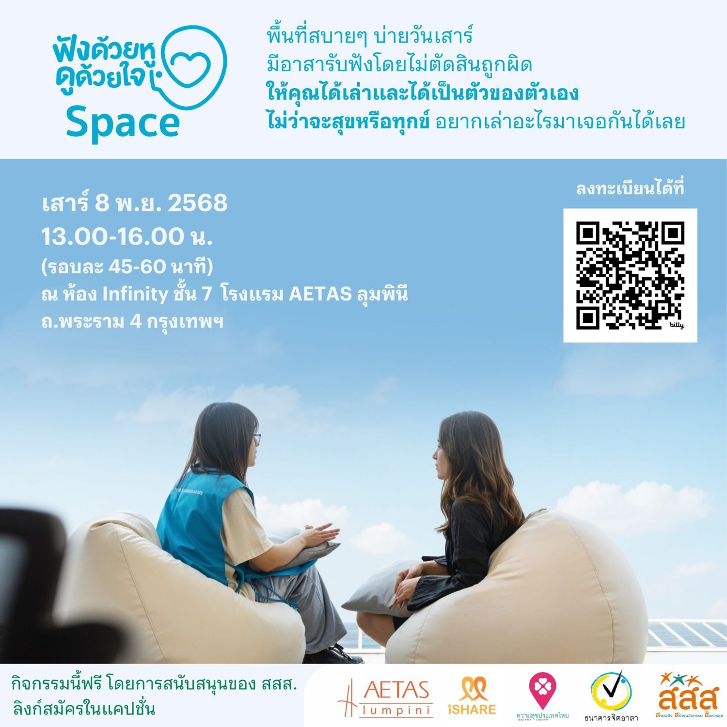 ออกไปมีประสบการณ์ Listenian Space พื้นที่รับฟัง พ.ย. 2568 ลงทะเบียนเป็นผู้แบ่งปันเรื่องราว เรื่องโดย ทีมงานความสุขประเทศไทย 23 Oct 2025