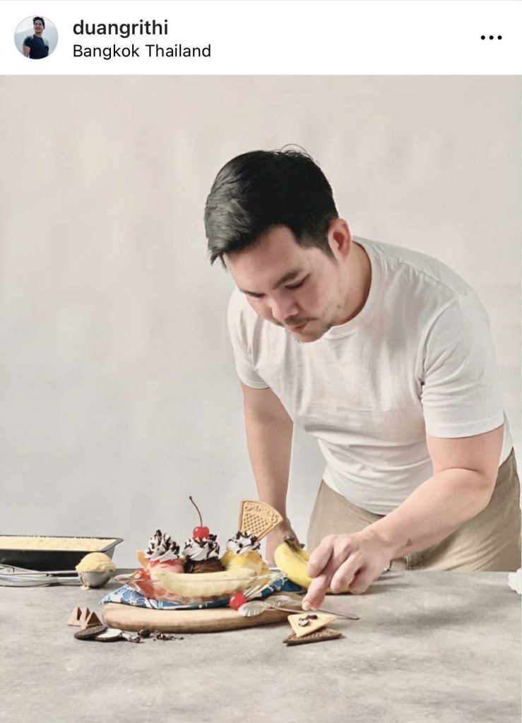 พี่ดวงฤทธิ์เรียนจบจากคณะโบราณคดี มหาวิทยาลัยศิลปากร รับราชการเป็นนักโบราณคดีและเป็นภัณฑารักษ์ในพิพิธภัณฑ์สถานแห่งชาติพระนครอยู่หลายปี ก่อนตัดสินใจลาออกเพื่อร่วมงานกับพิพิธภัณฑ์ร่วมสมัย “มิวเซียมสยาม” ในยุคก่อตั้ง “มิวเซียมสยามชวนทำความรู้จักกับ ‘ความเป็นไทย’ ผ่านการตั้งคำถามเช่น คนไทยคือใคร คนไทยกินอะไร คนไทยมาจากไหน อาหารไทยมาจากไหน ฯลฯ ทำให้อยากเล่าเรื่องราวศิลปะในอาหาร” พี่ดวงเริ่มทำเพจ ‘เรื่องเล่าหน้าเตาถ่าน’ แล้วเป็นคอลัมนิสต์ประจำในนิตยสาร Health & Cuisine และ Harper’s Bazaar Thailand และกลายมาเป็น food stylist ในที่สุด