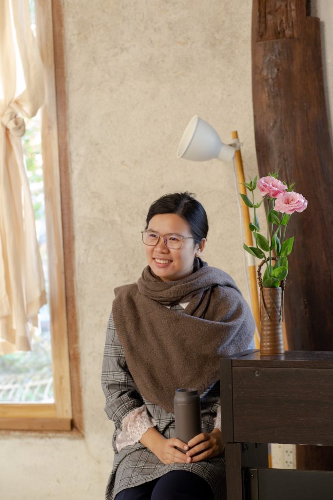 ที่โรงเรียนนี้สอนเรื่องการจัดดอกไม้ด้วย ทำให้รู้สึกสนใจ เพราะดอกไม้-ใบไม้มีอยู่ทุกที่ — ในฐานะนักจิตวิทยา เราพยายามค้นหาและทำความรู้จักกับเครื่องมือหลายๆ อย่าง เพื่อช่วยเหลือและดูแลจิตใจผู้คน ศิลปะและการจัดดอกไม้ก็เป็นเครื่องมือหนึ่งที่รู้สึกว่ามันน่าสนใจมาก ศิลปะแขนงนี้น่าจะเป็นเครื่องมือที่เราใช้แบ่งปันกับผู้คนได้ จึงไปเรียนการจัดดอกไม้แบบโคริงกะ เรียนจนได้ประกาศนียบัตรเพื่อเป็นครูสอนจัดดอกไม้เลย